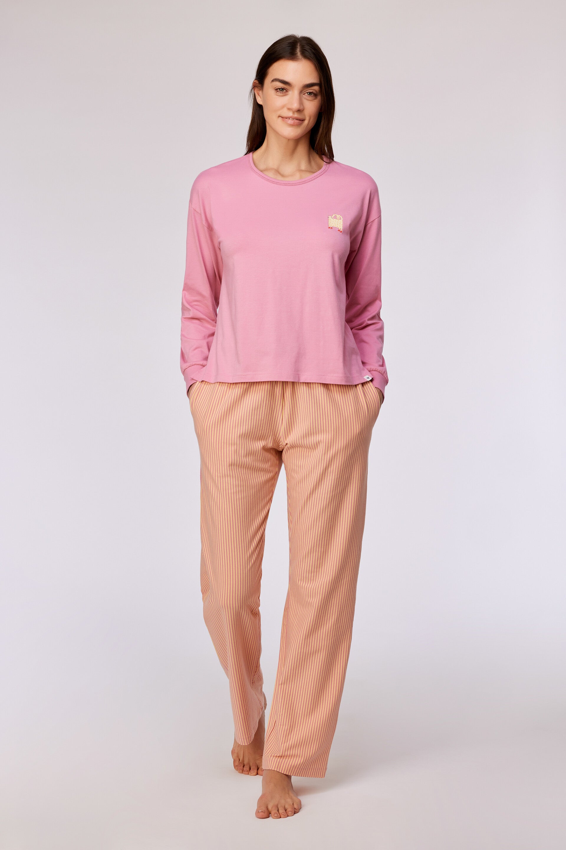 Roze pyjama met sweater en gestreepte broek in rekbaar katoen, smal