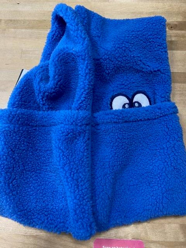Superzachte unisex sjaal, kids, blauw, met aan de uiteinden 2 zakjes.Leuk detail: op één kant staan de oogjes van woody geborduurd!