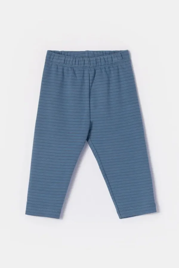 Donkerblauwe gestreepte pyjama. De pyjama is unisex en bestaat uit 100% katoen