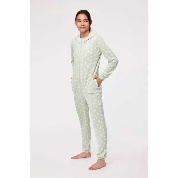 Dames Onesie, alloverprint bolletjes, muntgroen, medium