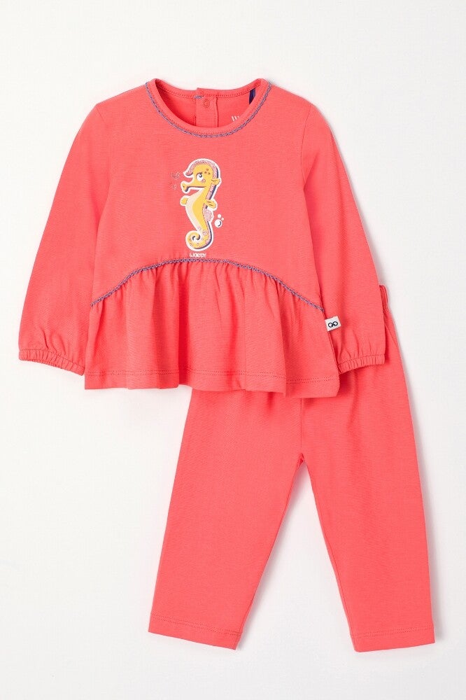 leuke pyjama, koraalrood, thema het zeepaardje, large