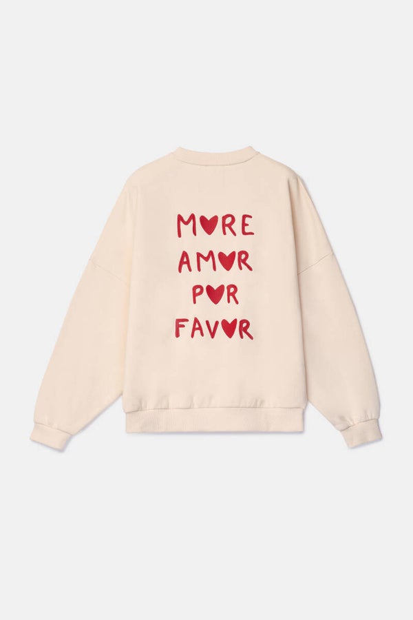 Prachtige sweater, gebroken wit met een prachtige geborduurde applicatie op de rug.