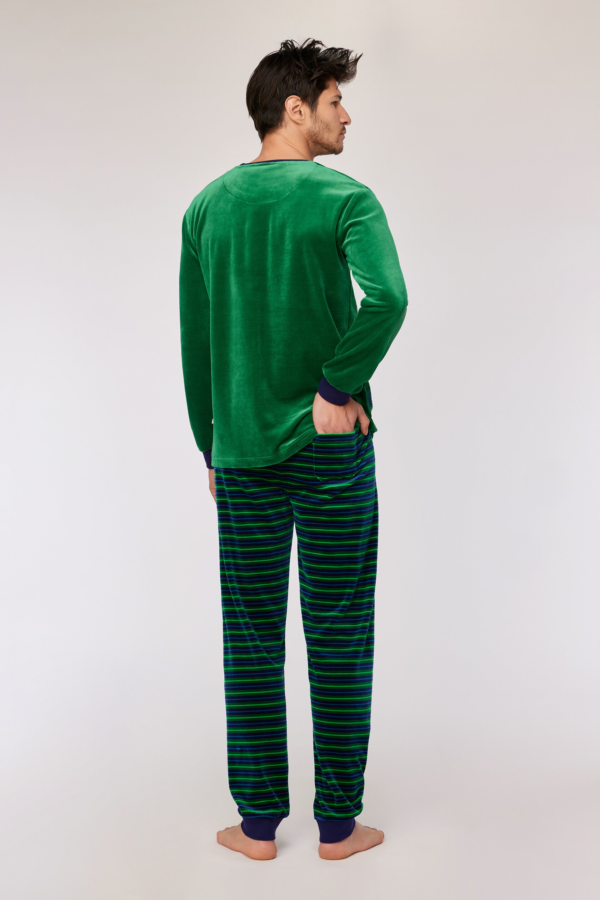 Donkergroene pyjama in velours met gestreepte broek, medium