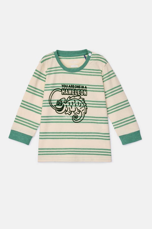 Jongens-Heren pyjama, groen gestreept, 9 maand